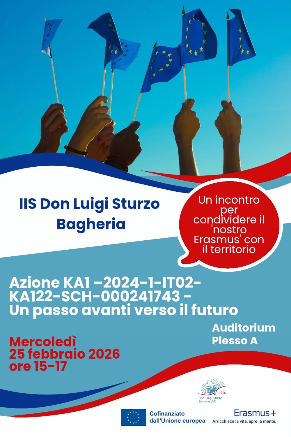 Si comunica che mercoledì 25/02/2026, dalle ore 15 alle ore 17, presso l’Auditorium del plesso A, si terrà un incontro di disseminazione e diffusione delle attività che si sono svolte nell’ambito del progetto Erasmus+ Azione KA1 –2024-1-IT02-KA122-SCH-000241743 ‘Un passo avanti verso il futuro’. All’incontro saranno presenti tutti i docenti e discenti che hanno partecipato alle diverse mobilità previste dal progetto e che …