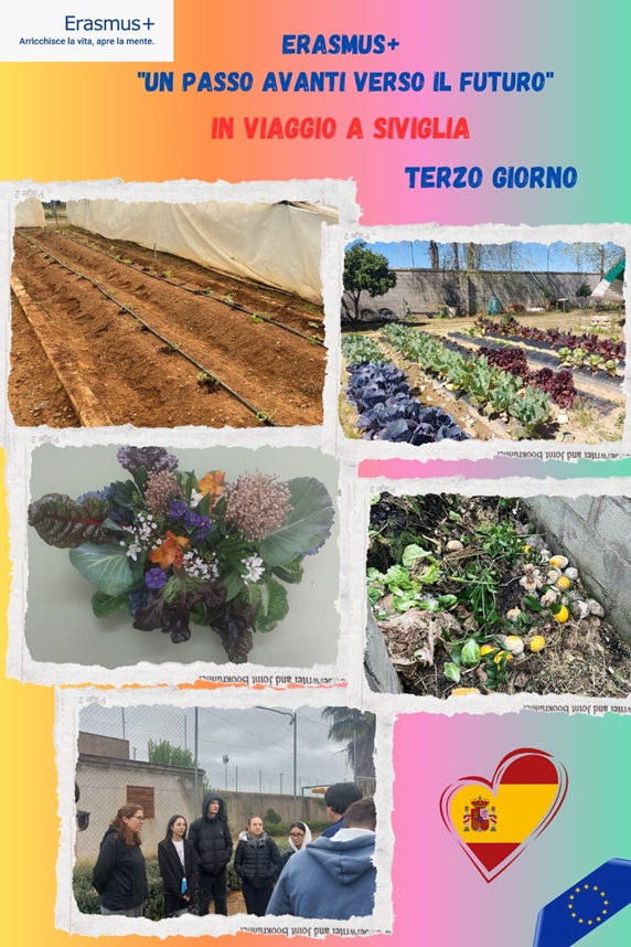 Il terzo giorno delle attività Erasmus presso la scuola Ramón y Cajal ha visto I beneficiari impegnati nell’ascolto della teoria e nell’osservazione pratica delle lezioni di agricoltura e giardinaggio. La scuola infatti ha un importante progetto chiamato ALDEA che punta alla formazione di futuri lavoratori impegnati nello sviluppo sostenibile in materia di agricoltura e giardinaggio. È stato spiegato come creare un compost biologio, senza l’uso di nessun elemento chimico, poi si è osservato come piantare i semi di pomodoro e come realizzare delle composizioni con materiali vegetali e floreali. La seconda parte della mattinata è stata dedicata invece all’orientamento universitario, é stato spiegato nel dettaglio come accedere alle varie facoltà universitarie e come funzionano le stesse. Infine gli studenti si sono relazionati con i loro pari per decidere insieme come elaborare i prodotti digitali da pubblicare su etwinning.