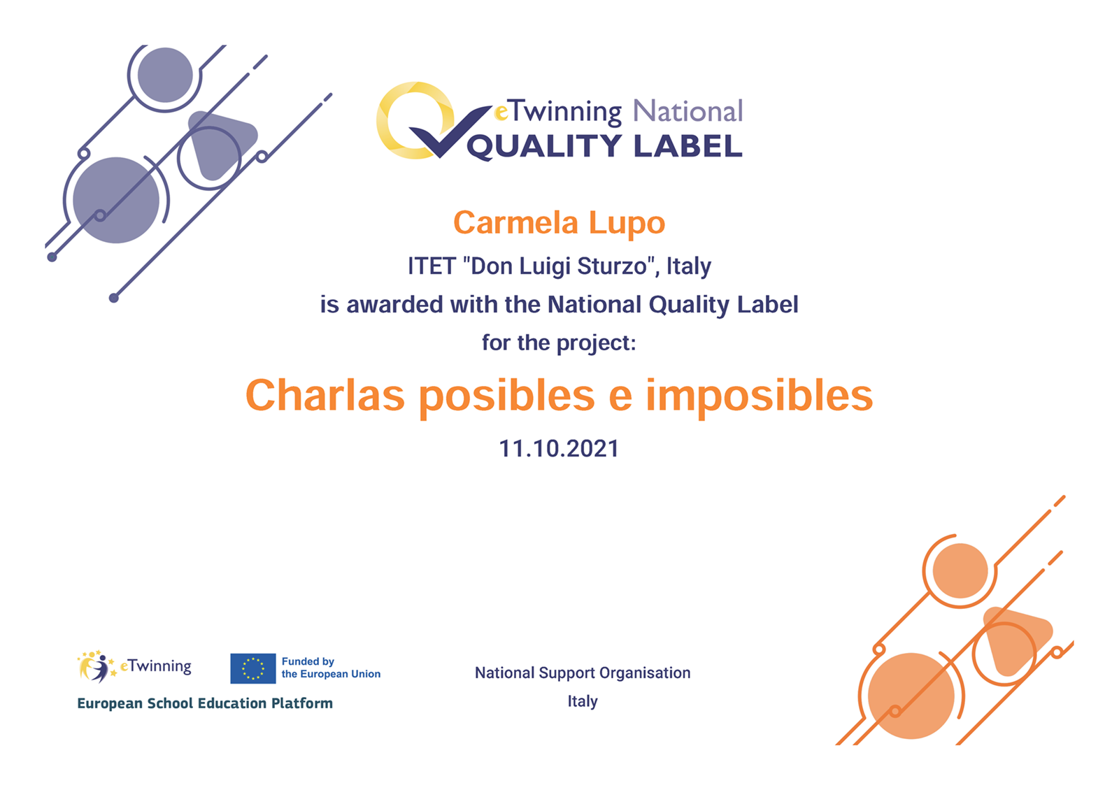 Ottenimento certificato di qualità nazionale per il progetto etwinning ‘Conocerse para mejorarse”